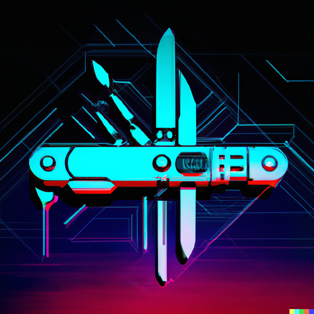 "technological swiss knife, synthwave"