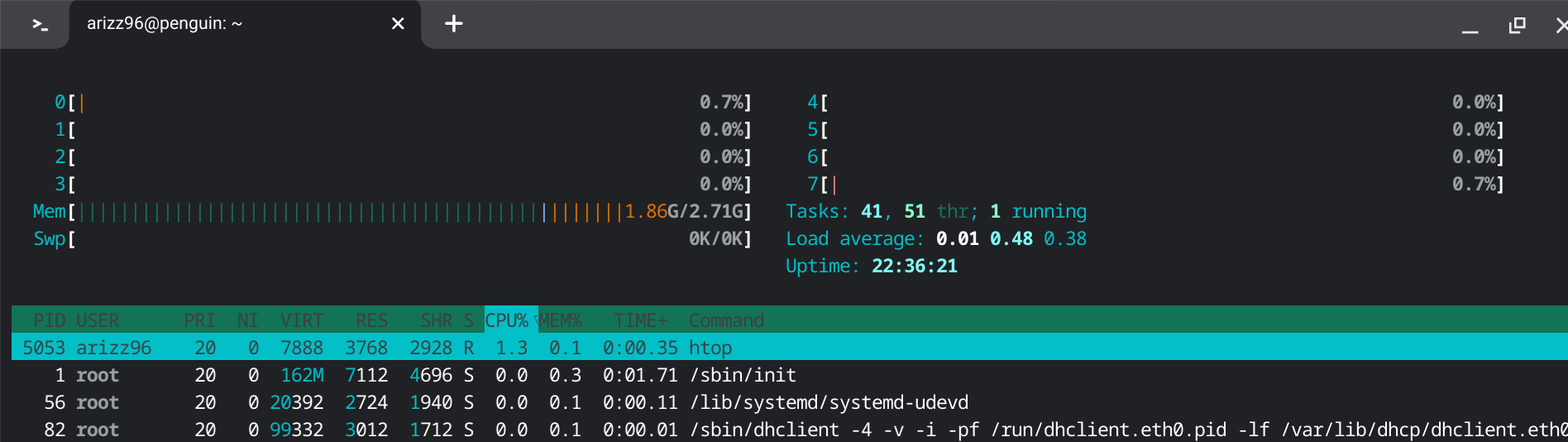 htop snapshot running on Debian 11