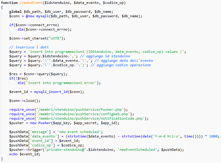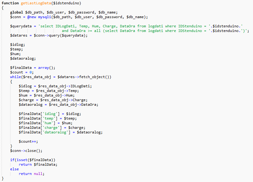 As an IoT device, it needs some cloud system to work fully, offering remote control, real-time notifications, and historical data storage. To do that we used PHP, simply because it’s the programming language that we were using at school to build server applications, and we chose Altervista as the cloud provider as it offers a free plan that suited our needs (web hosting and a MySQL database).