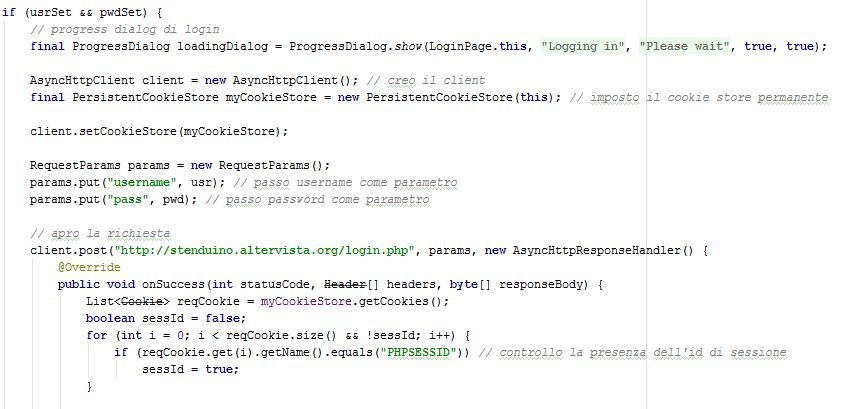 Android application login page and related code