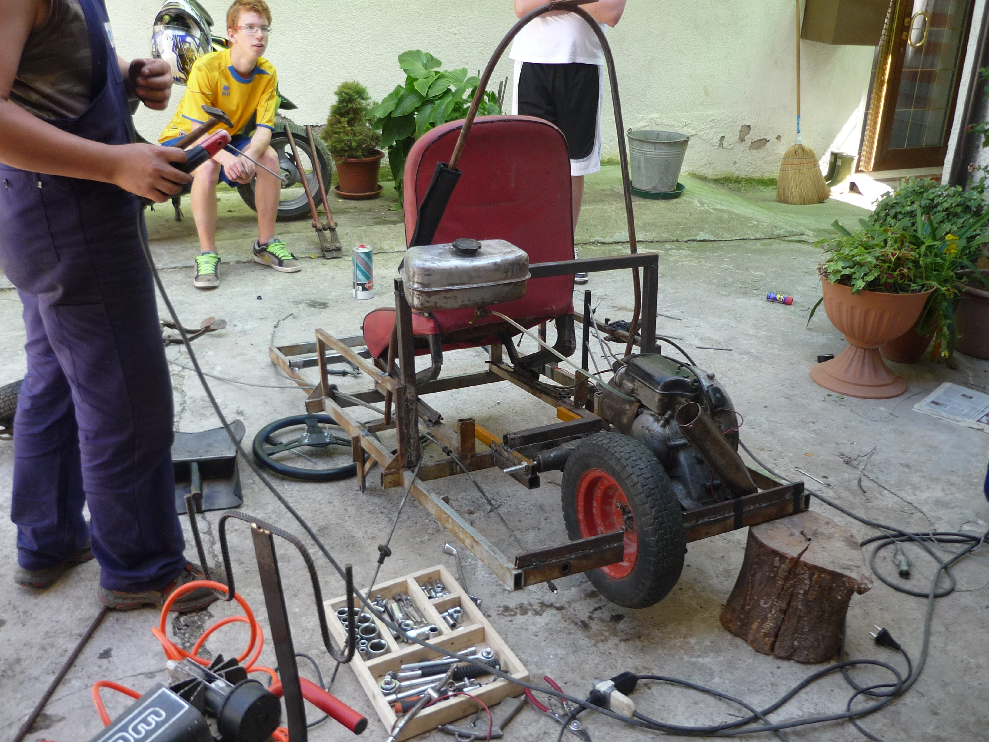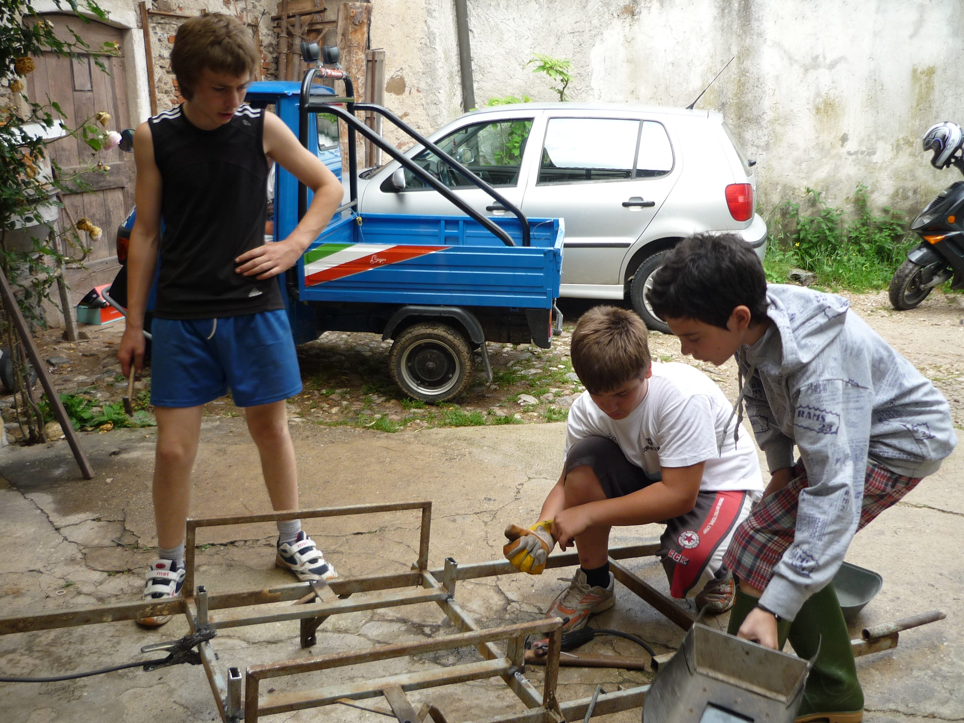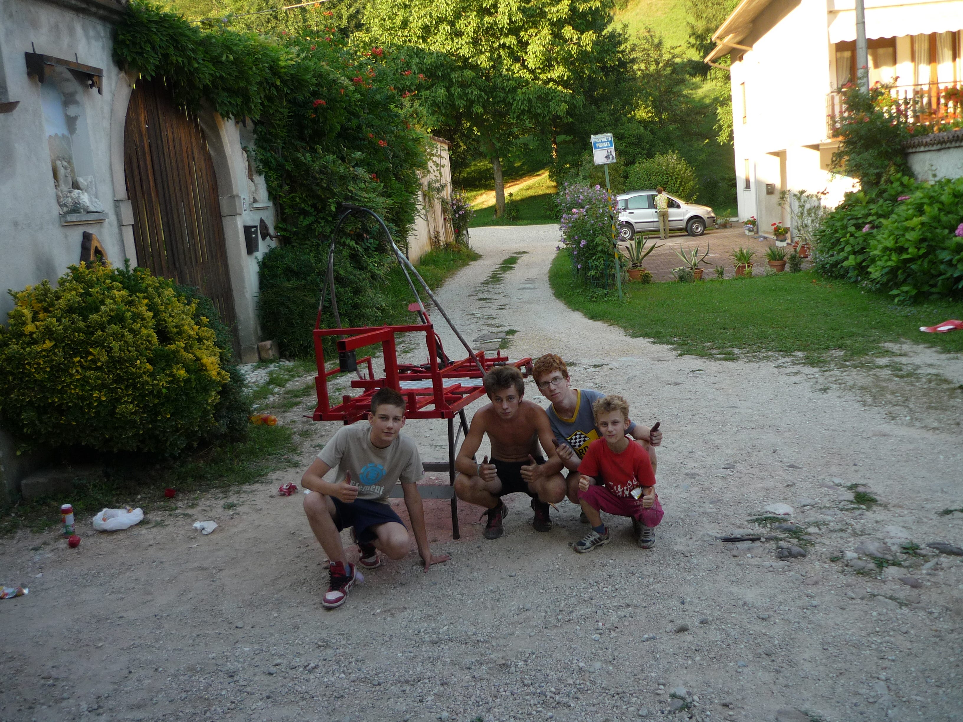We were fortunate that Michele, Giulio, and Silvio went on vacation to Puglia for a week or two that summer, which meant we had to put the kart project on hold. I say we were lucky because Michele’s father, who was definitely more skilled in welding techniques, reinforced the structure where it was needed and perhaps prevented it from collapsing (as happened with the wheels on the first run; they gave out, and the kart flopped to the ground as if it were exhausted).