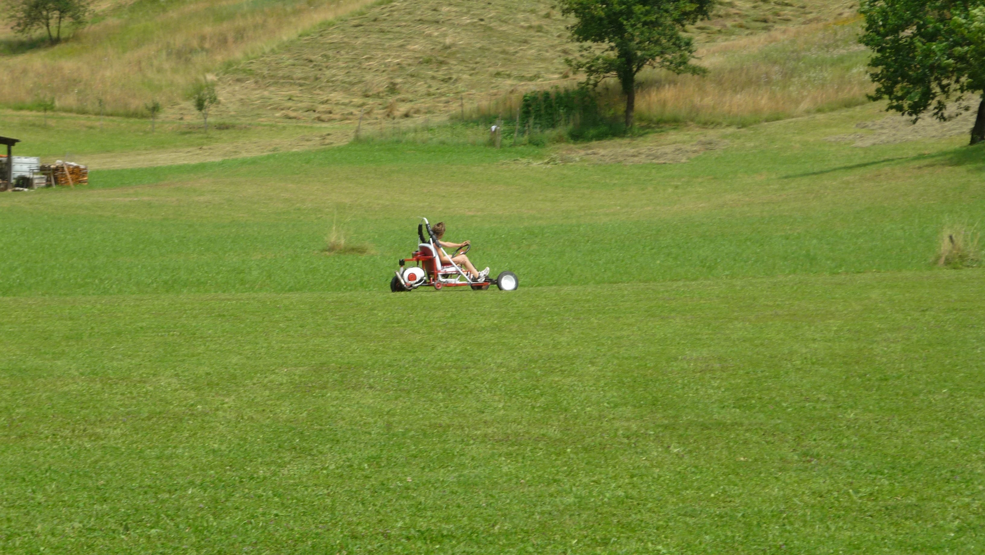 The playground where we tested and had a lot of fun with the kart was literally a field. At Castellani, there’s a large private grass field in front of Nicola’s house, and it was perfect for us.